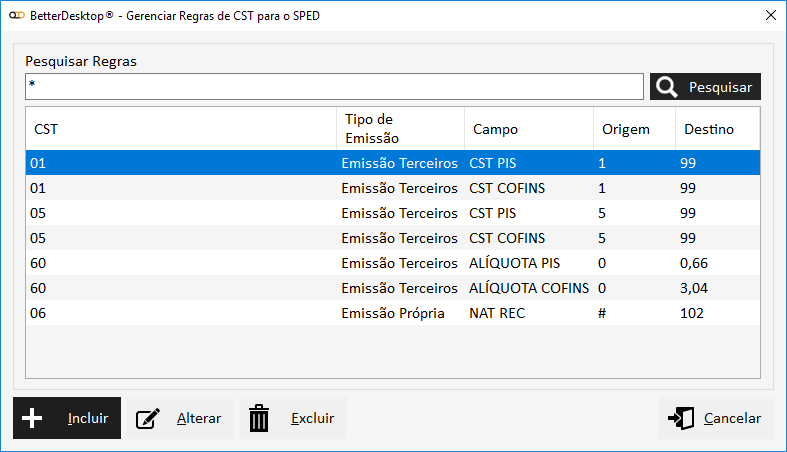 Isso quer dizer que, se uma Nf de compra estiver com um produto CstPis = 01, e você crie uma regra para conversão em 60, o mesmo documento permanecerá com o Cst 01, porém no arquivo gerado o