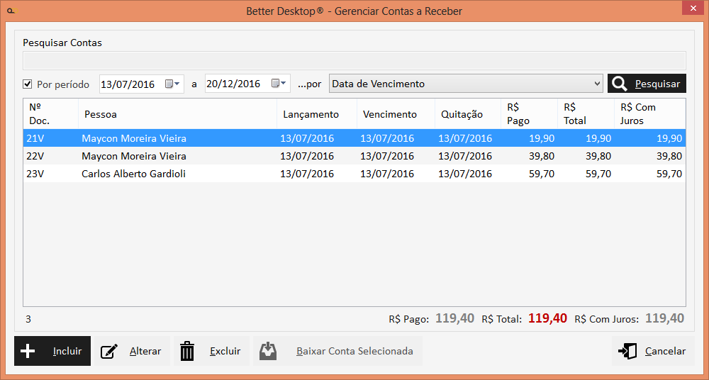 Bastando selecionar a conta e clicar no botão Baixar Conta Selecionada.