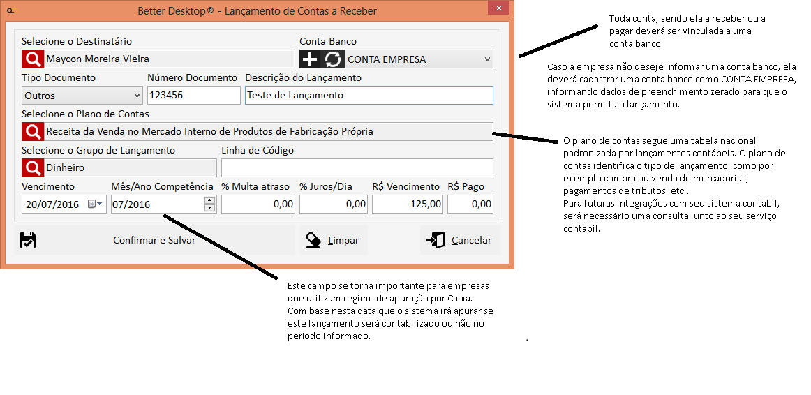 Lembrando que para efetuar o lançamento de uma conta, você deve possuir o cliente cadastrado anteriormente.