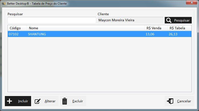 ->Tela Principal->Gerenciar->Criar Tabela de Preço por Cliente