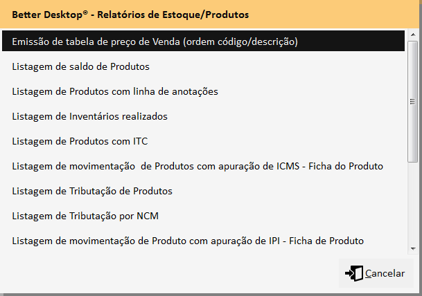 ->Tela Principal->Impressão->Relatórios de Produtos