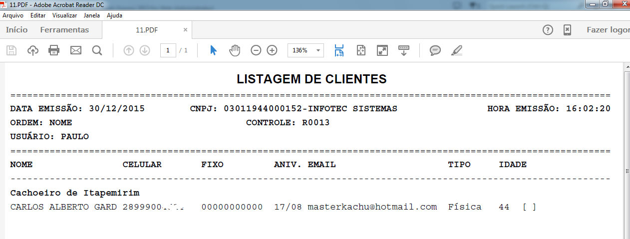 Você pode perceber que o relatório possui no final de cada linha [ ] para que seja marcado e feito um controle para saber quais os clientes que já