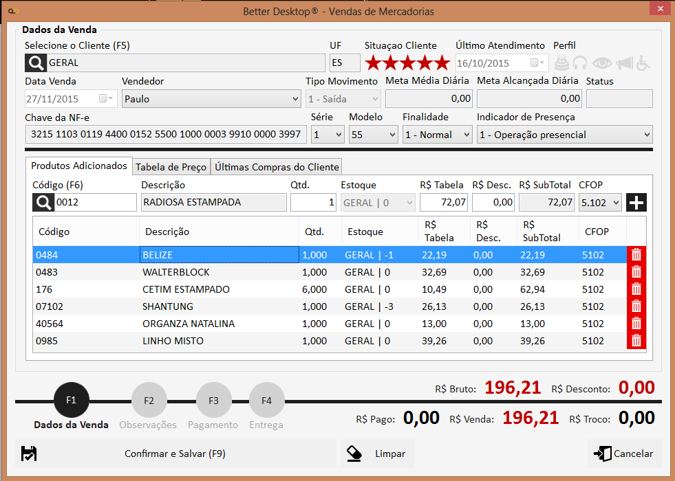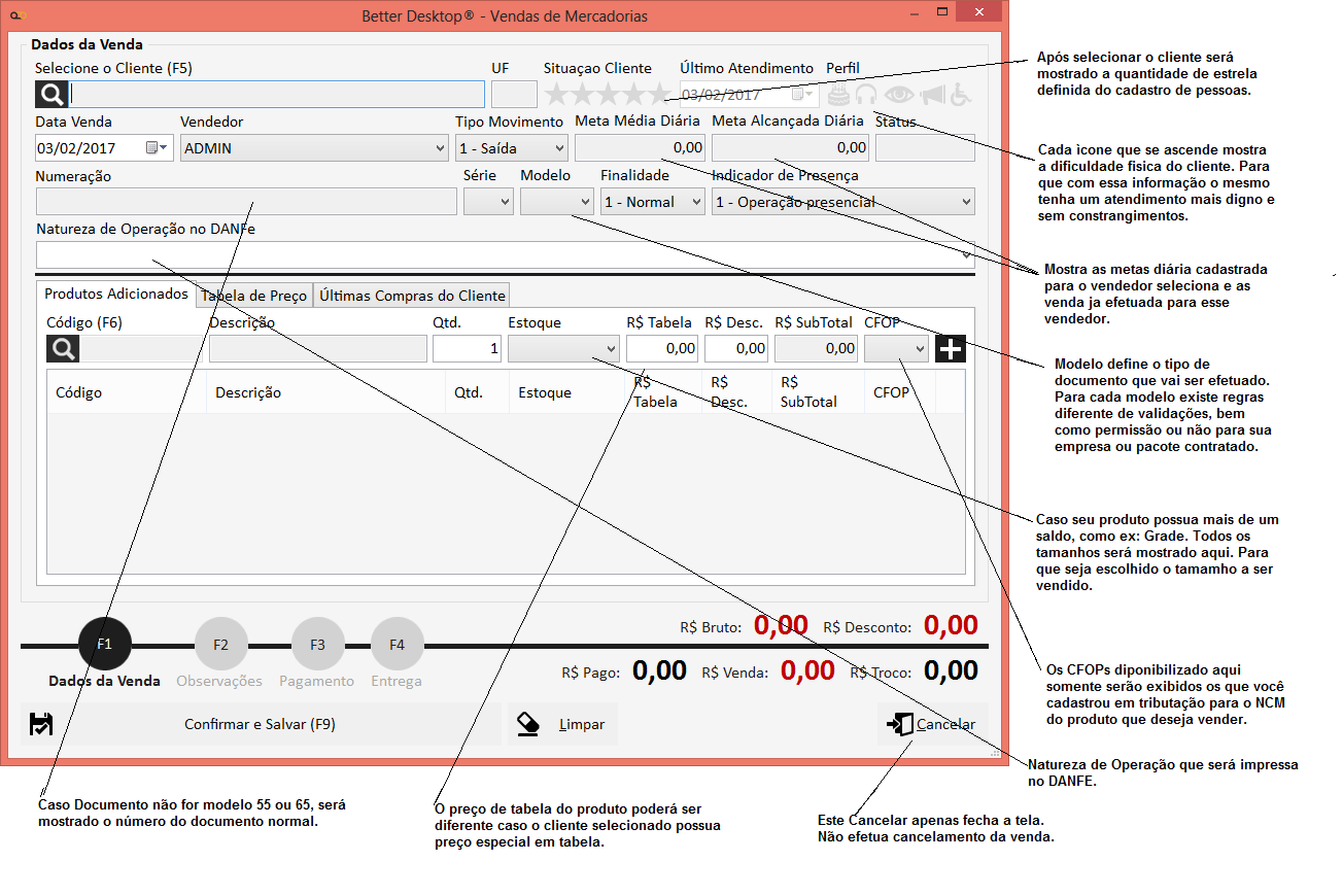 No sistema Better a mesma tela utilizada para venda será utilizada para emissão de todos os documentos fiscais relacionados a venda.