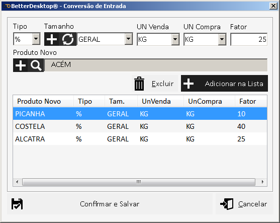 1000kg exemplificando, 10% será acrescentado no saldo da PICANHA, 40% será acrescentado no saldo da COSTELA e