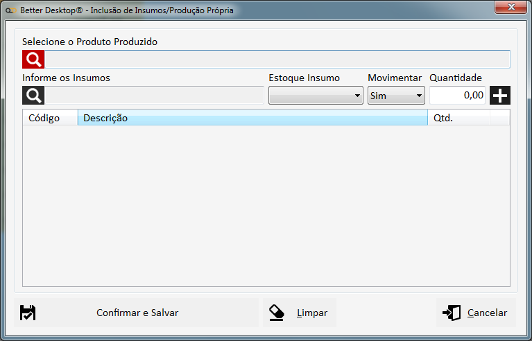 Através desta opção você poderá determinar para produtos com tipo PRODUÇÃO PROPRIA quais os produtos compõe a
